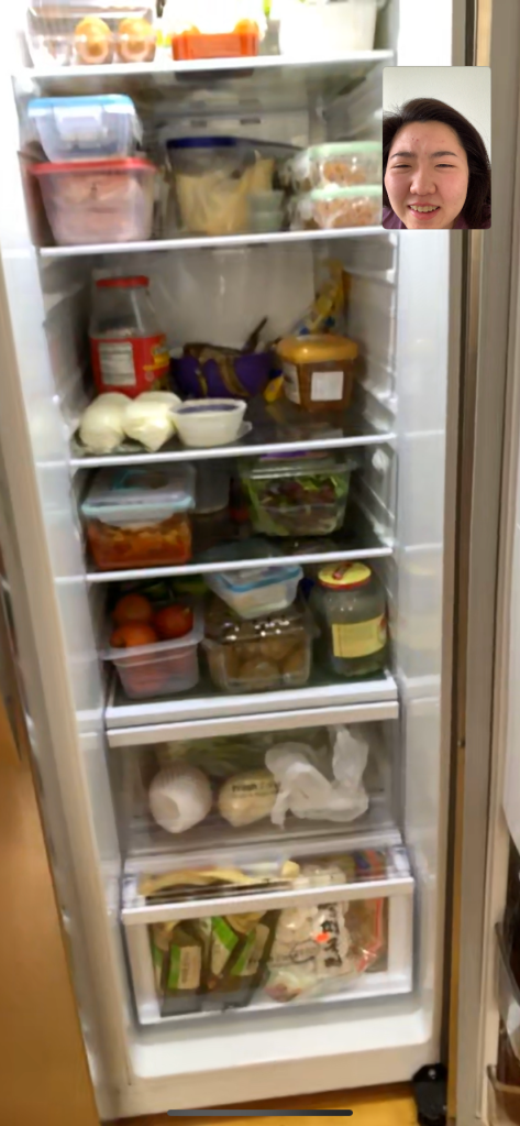 FACETIMING my sister to see what food we had at home while I am upstairs.